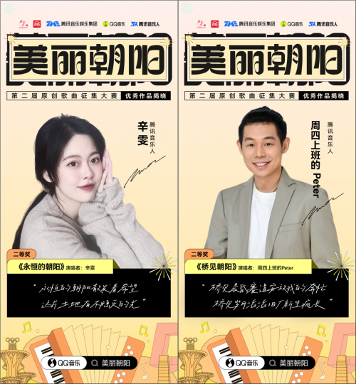 即日起,公众可登录QQ音乐平台搜索“美丽朝阳”,在线收听全部获奖作品,感受音乐与城市同频共振的动人旋律,感受这座城市的发展脉搏与人文情怀。