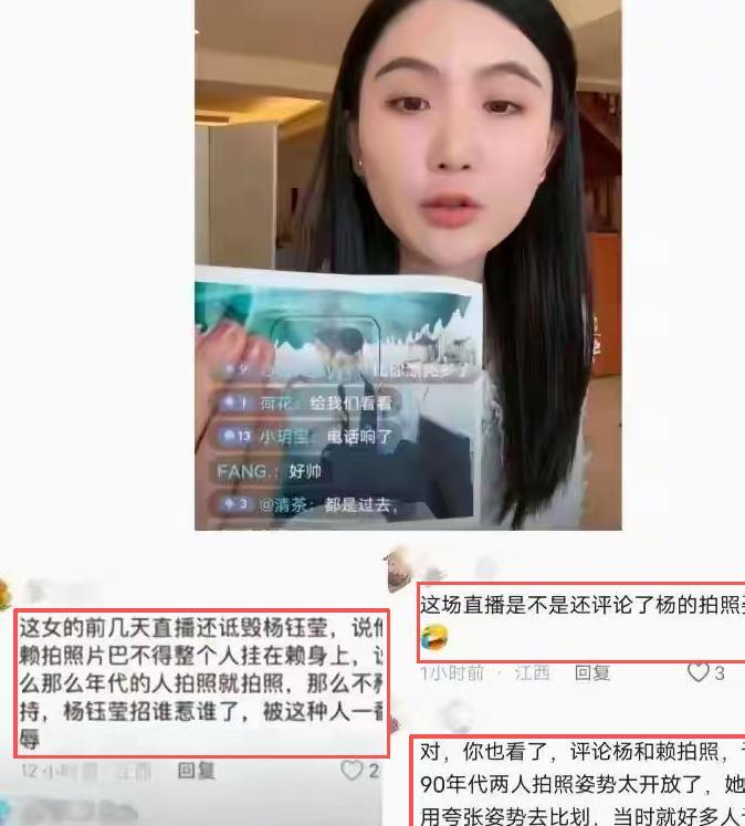 比如她会晒赖文峰和杨钰莹的合照,还点评两人靠得太近,称杨钰莹像挂在他身上,也太主动了。