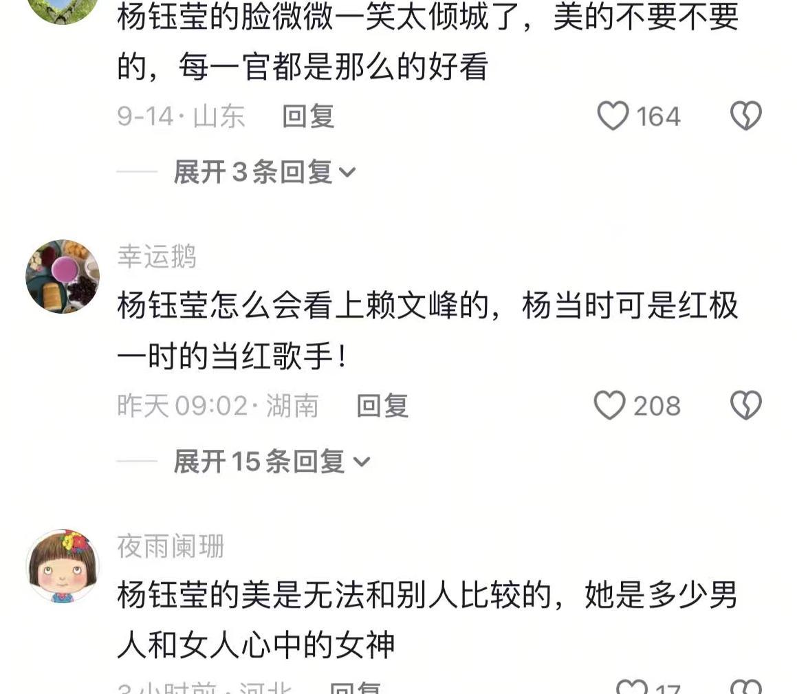 这也没办法,杨钰莹是赖伟峰的白月光,而且赖文峰是杨钰莹的初恋,那段感情也是两人公开承认的。