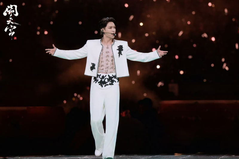 整场演出以“美猴王闹天宫”为主题,打造出“画卷天宫”的视觉概念,在传承经典的同时赋予传统文化新的时代内涵。音乐编排上,演出突破了传统音乐与现代流行音乐的界限,陕北说书的叙事性与电子乐节奏巧妙结合,侗族大歌的多声部合唱融入国际化编曲,唢呐、二胡等传统乐器的运用成为旋律中的鲜明标识。