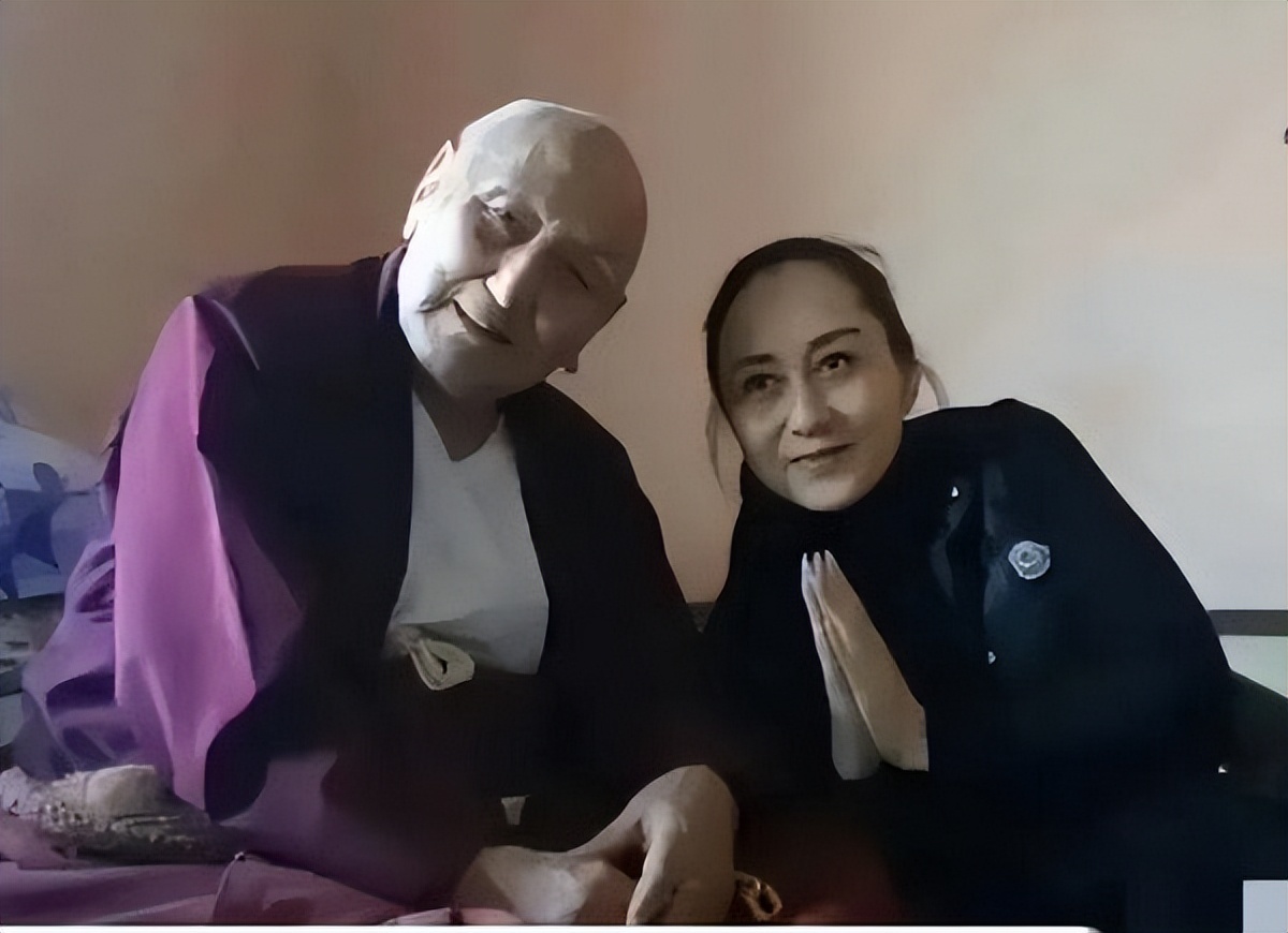 照片中,利智双手合十,身边还坐着一位僧人,李连杰也曾和对方一起合照留念。