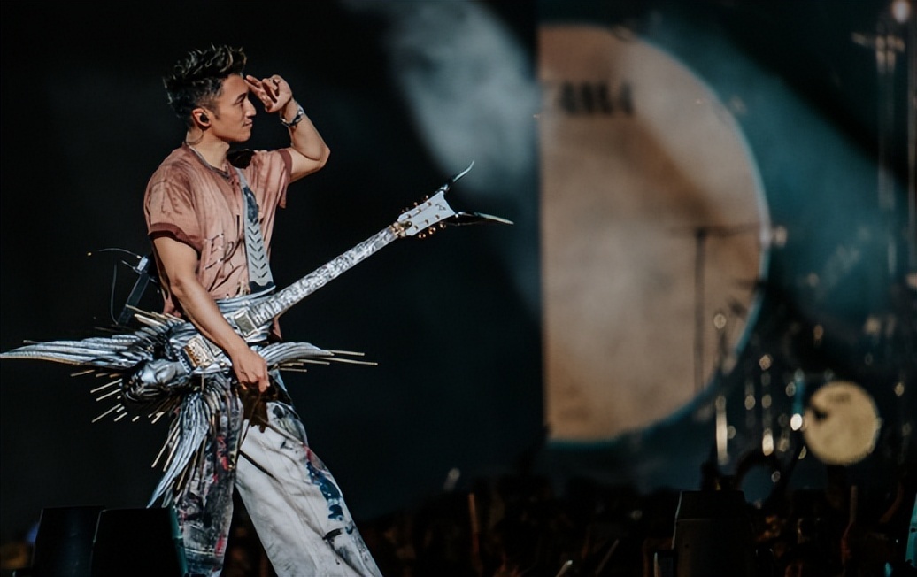 他在舞台上又唱又跳,弹吉他的样子非常帅气,他的舞台搭建的很好。