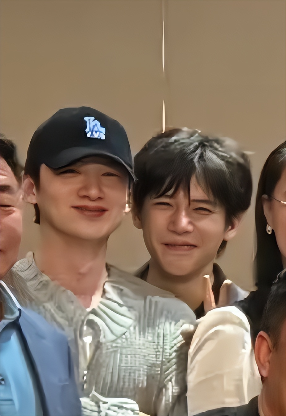 俩人眯眯眼的,都快看不出帅哥的模样了。