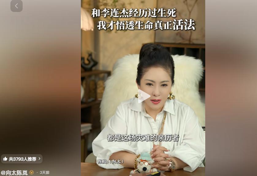 向太发布的一条视频,讲到了她和李连杰“经历生死”的往事。