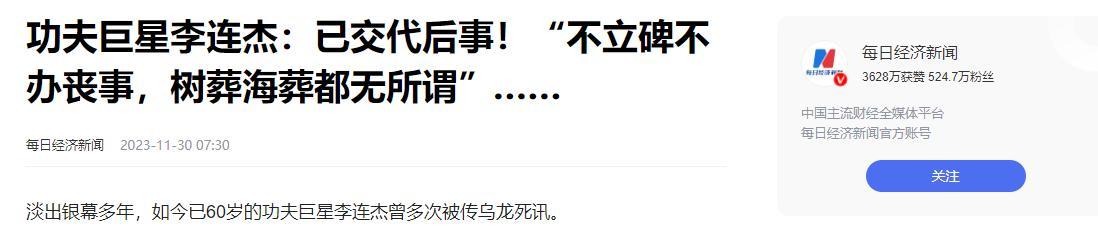 好像隔一段时间就会有关于李连杰的“死讯”传出,每次都是本人出来辟谣,充满了荒诞的幽默感。