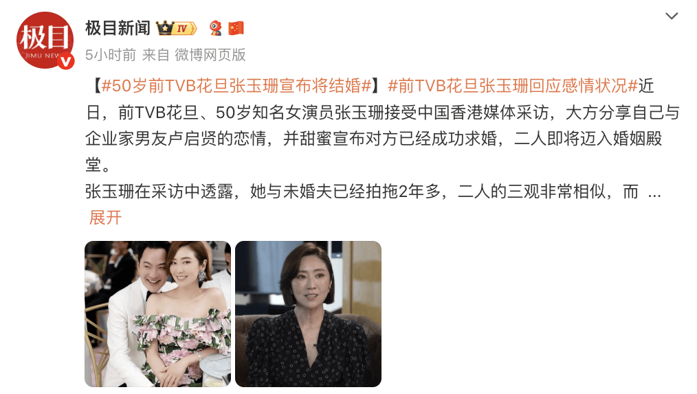 近日,前TVB花旦、50岁知名女演员张玉珊接受中国香港媒体采访,大方分享自己与企业家男友卢启贤的恋情,并甜蜜宣布对方已经成功求婚,二人即将迈入婚姻殿堂。