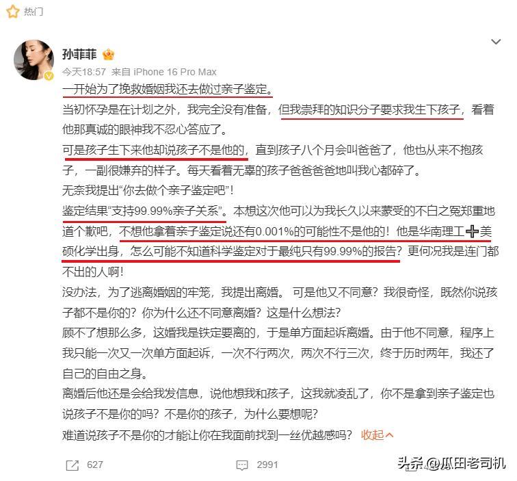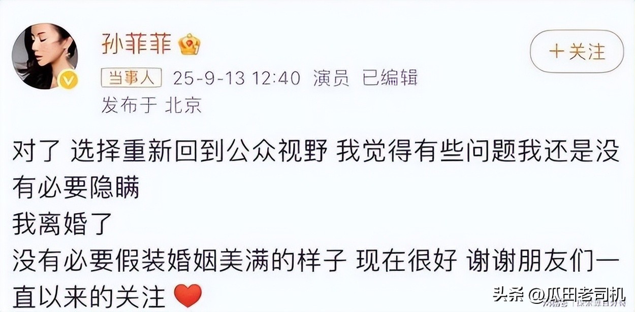 在两个月后,孙菲菲也官宣了离婚的消息。