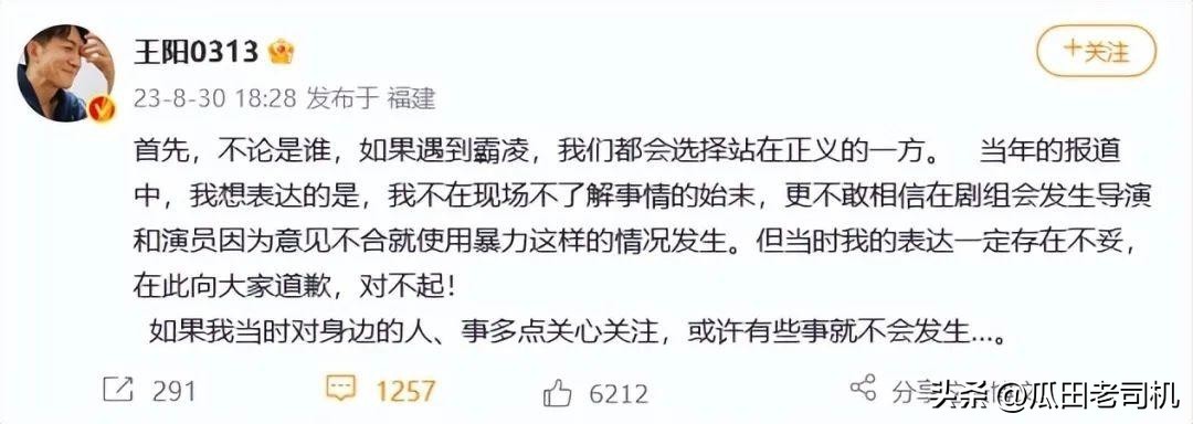 而王阳身为这部剧的男主,也跟这件事扯上了关系,在这件事还在激烈的时候。
