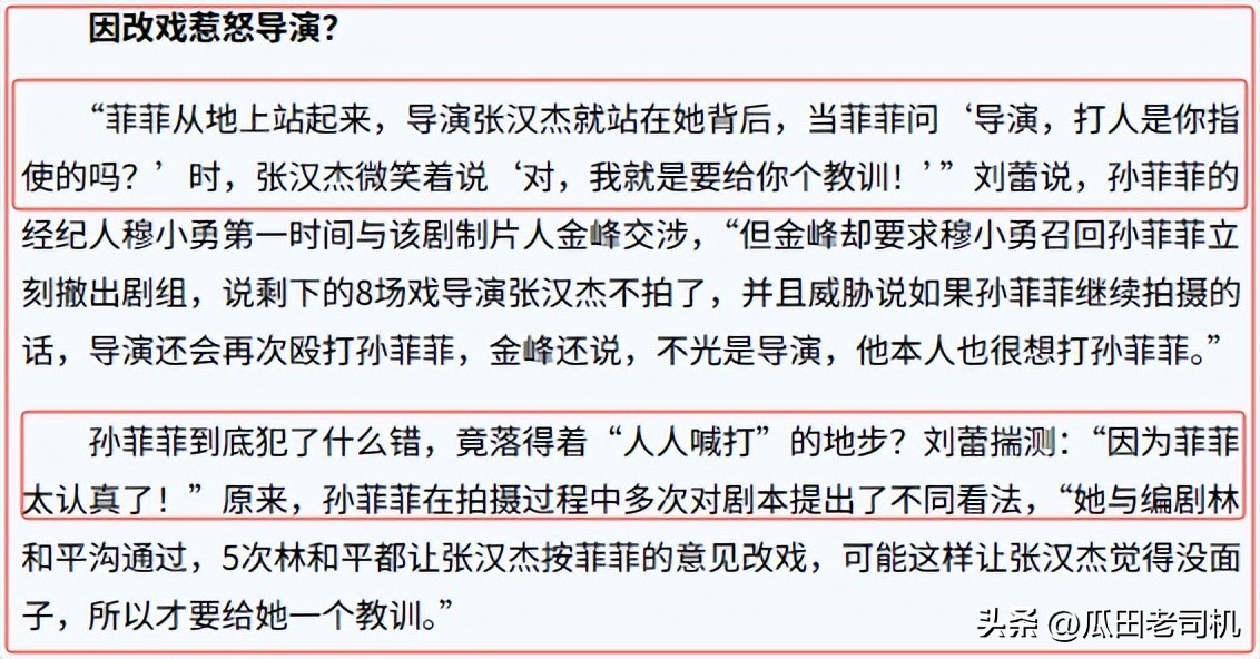 打孙菲菲的三人均被抓走,而导演张汉杰却一点事都没有。