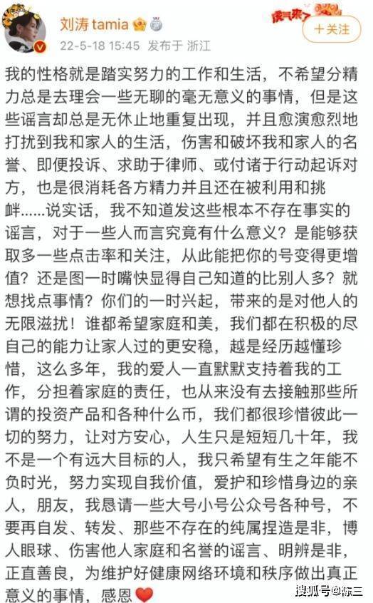 几年前更是有博主爆料称刘涛因为男方炒币血亏,双方在协议离婚。